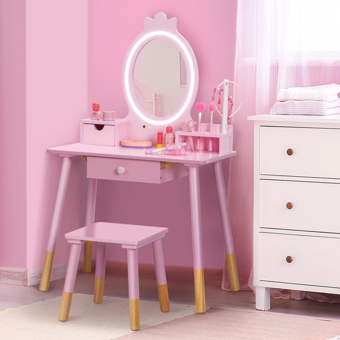 Дрвено козметичко огледало со Led светло