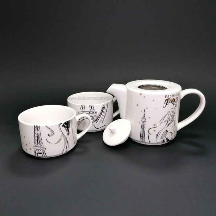 Керамички чајник со 2 шолји