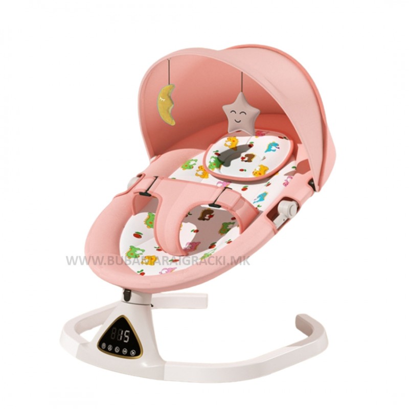 Бебешки релаксатор розов со bluetooth и далечинско