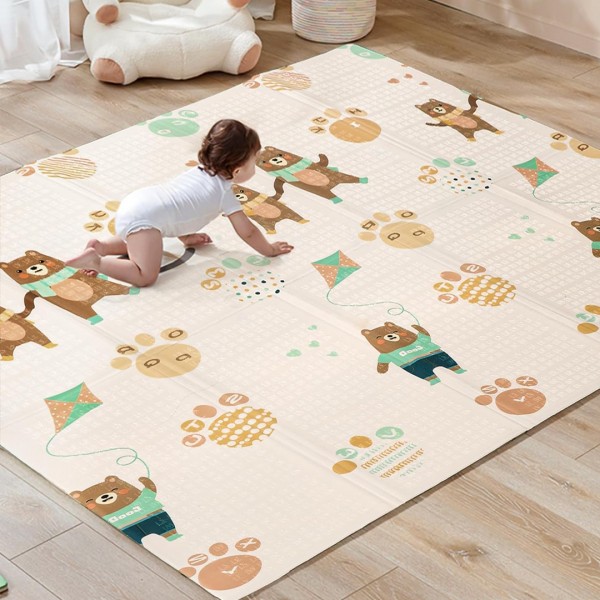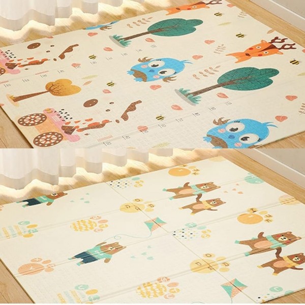 Двостраната еколошка подлога е одлично место за превртување, лазење како и за првите чекорчиња. Исто така обезбедува одлична изолација. Подлогата е од двете страни со различни живописни дезени кои поттикнуваат игра. Лесна за склопување и чување, вклучена е торба. Водоотпорна и лесна за одржување.