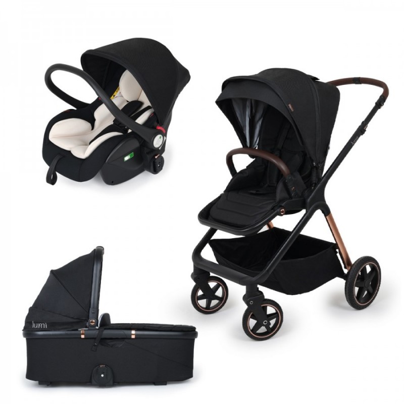 Системот Jungle Lumi 3-во-1 вклучува количка, тврда корпа за носење и бебешко седиште автомобил.