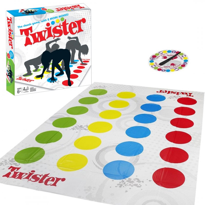 Твистер е забавна игра која вклучува двајца или повеќе играчи. Ставете ја подлогата на подот, завртете ја стрелката и почнете да играте. Губи тој што ќе изгуби рамнотежа.