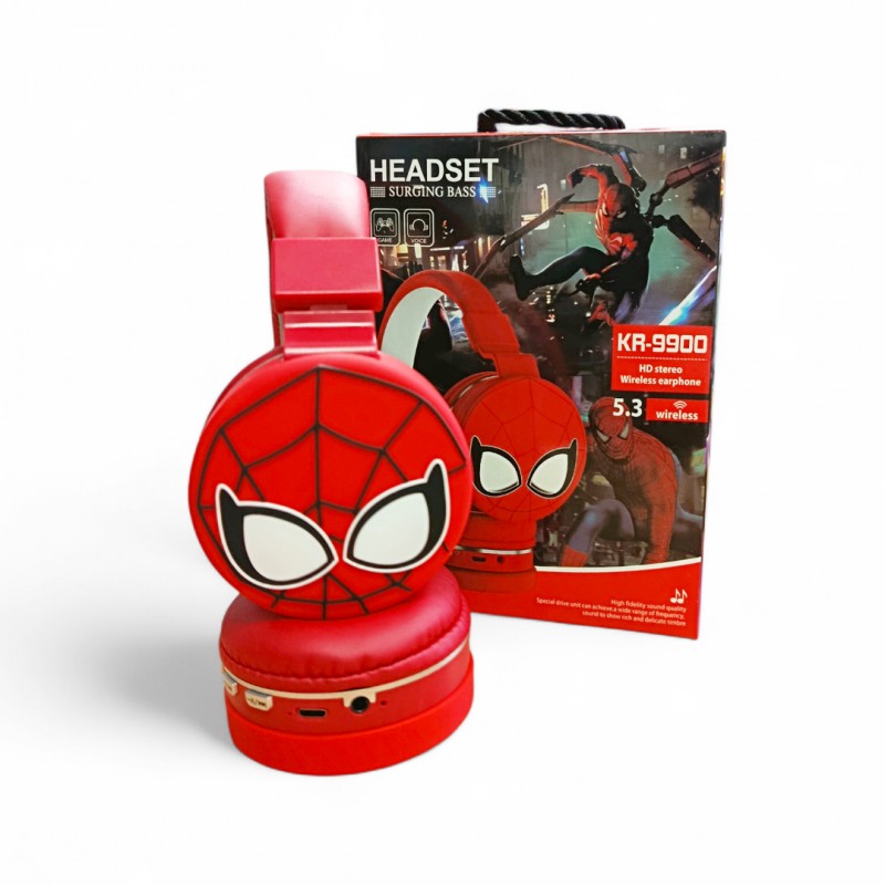 Безжични слушалки Спајдермен кои може да се поврзат преку Bluetooth со телефон, лаптоп, таблет или било кој уред што подржува bluetooth. Може да одговарате на телефонски повици преку нив. Имаат слот за мемориска картичка. Преклоплив и модерен дизајн. Идеален подарок за вашите најмили.