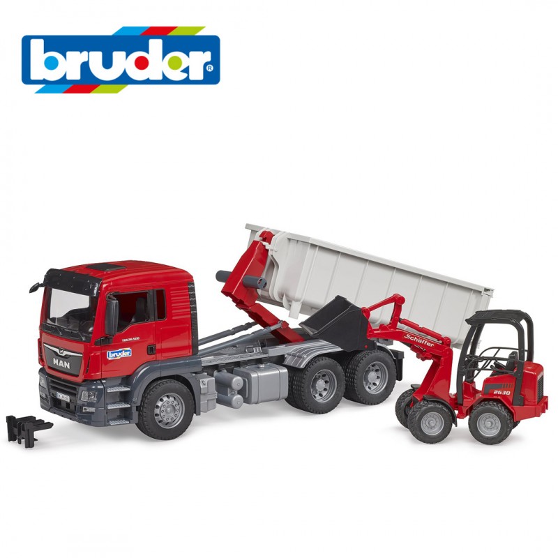 Man TGS е едно од најиздржливите возила на сите градилишта. Кога неговата приколка е поставена на подот, во неа може да влезат помали градежни возила за да бидат транспортирани. Идеален сет за мали градители за забавна игра дома или надвор!
