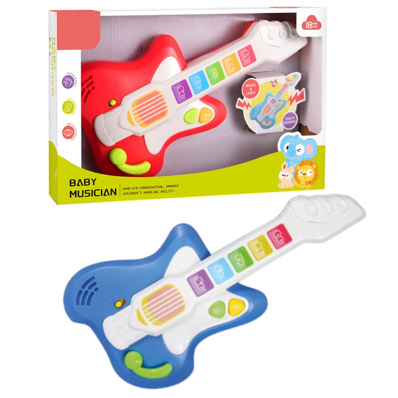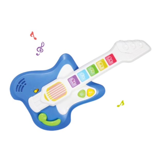 Забавна интерактивна гитара со тач- копчиња, специјално дизајнирана за малите рок свезди! Секое притискање активира мелодии, звуци и светла. Јачината на звукот се прилагодува(појако/потивко).