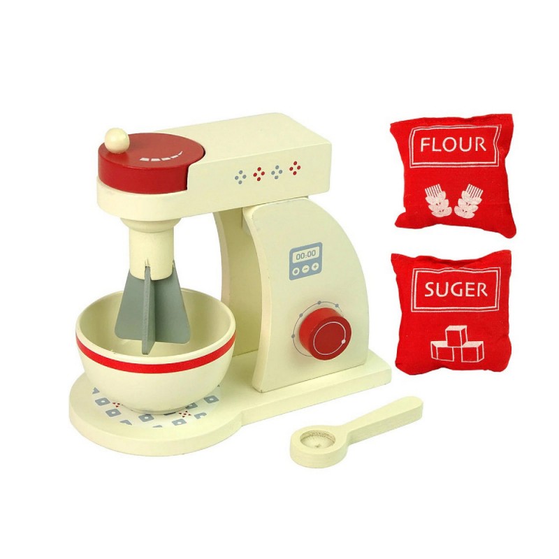 Изматете ја Вашата омилена торта со помош на дрвениот миксер, во сетот се вклучени платнени пакувања за брашно и шеќер. Перките на миксерот вртат.