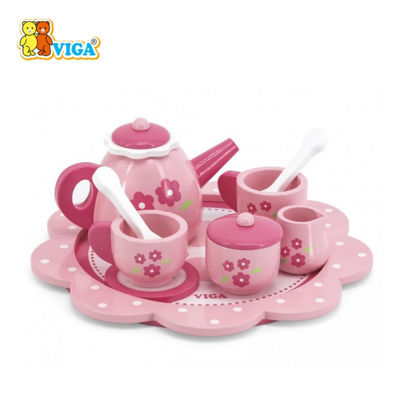Прекрасен дрвен сет за чај на Вига изработен од квалитетно дрво и нетоксични бои.