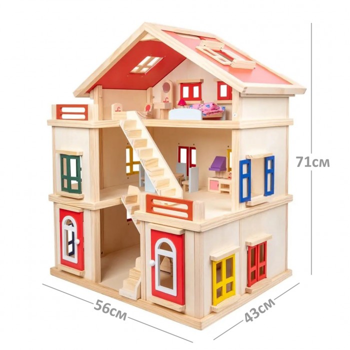 Прекрасна дрвена куќичка за кукли која ќе ги воодушеви вашите малечки принцези. Куќичката е на три к..