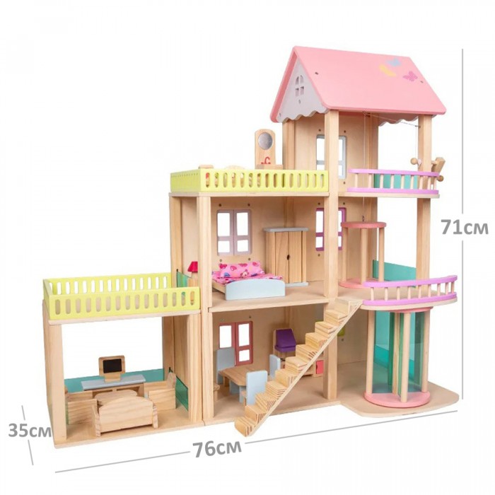 Прекрасна дрвена куќичка која ќе ги воодушеви вашите малечки принцези. Куќичката е на два ката со пр..