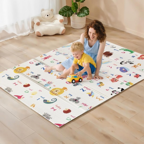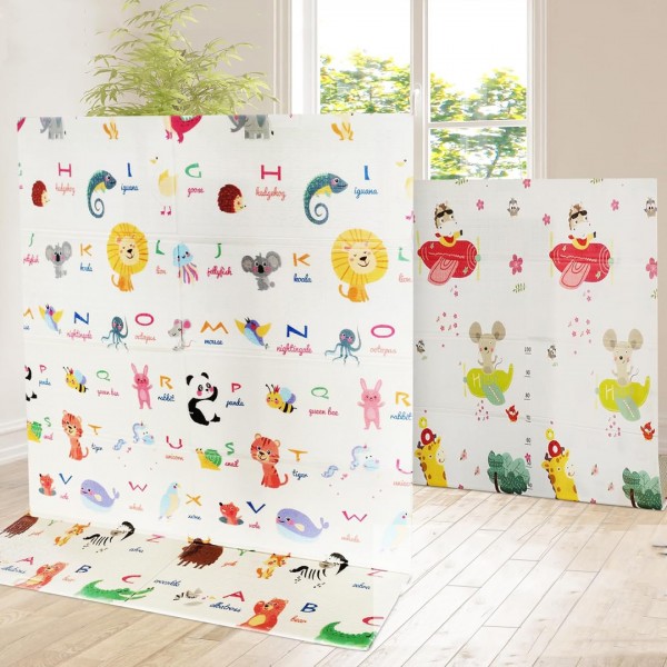 Двостраната еколошка подлога е одлично место за превртување, лазење како и за првите чекорчиња. Исто така обезбедува одлична изолација. Подлогата е од двете страни со различни живописни дезени кои поттикнуваат игра. Лесна за склопување и чување, вклучена е торба. Водоотпорна и лесна за одржување.
