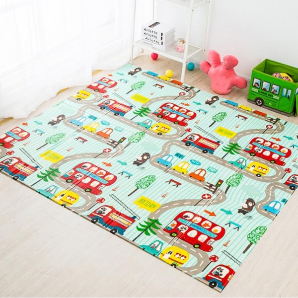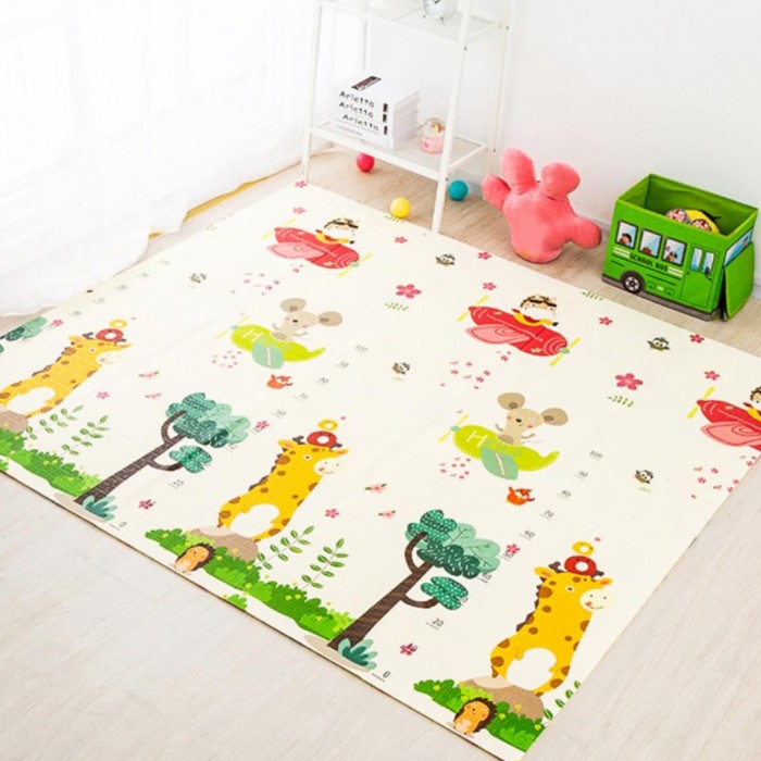 Двостраната еколошка подлога е одлично место за превртување, лазење како и за првите чекорчиња. Исто така обезбедува одлична изолација. Подлогата е од двете страни со различни живописни дезени кои поттикнуваат игра. Лесна за склопување и чување, вклучена е торба. Водоотпорна и лесна за одржување.