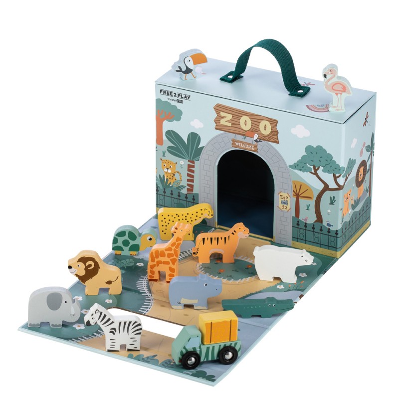 Прекрасна мини зоолошка градина која сигурно ќе го воодушеви секој мал ЗОО - неговател. Во зоолошката градина живеат: тигар, леопард, лав, бела мечка, желка, зебра, слон, жирафа,фламинго, папагал, крокодил.... Мини зоолошката градина може да стане почеток на голема авантура.