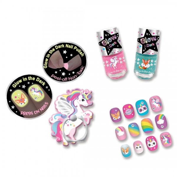 Заблескај со стил – дури и во темнината! Создај гламурозен изглед на твоите нокти и уживај во забавата – затоа што твоите нокти ќе светат во темнина! Овој сет содржи сè што ти е потребно за совршени, модерни нокти.