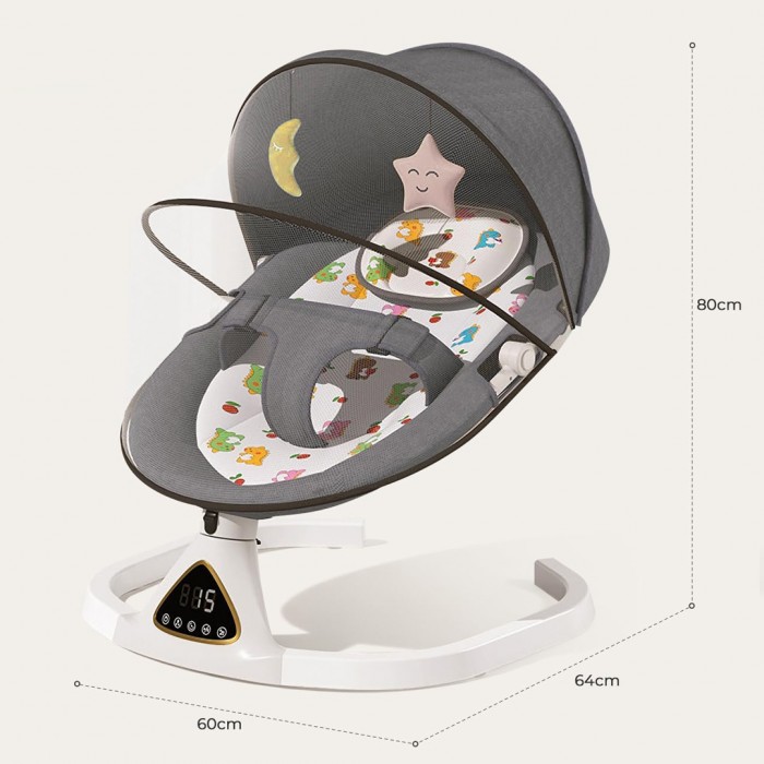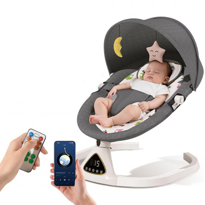 Бебешки релаксатор сив со bluetooth и далечинско