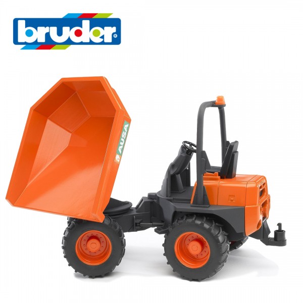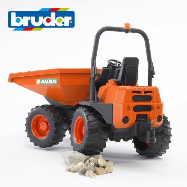 BRUDER го надополнува своето успешно семејство на мали градежни машини со мини дампер, верна реплика на Dumper D 350 AHG од шпанската фирма AUSA. Овој компактeн модел со зглобно управување и погон на четири тркала може да превезува товари и на нерамни или тешко достапни терени, задржувајќи ги сите тркала на земја во секое време.