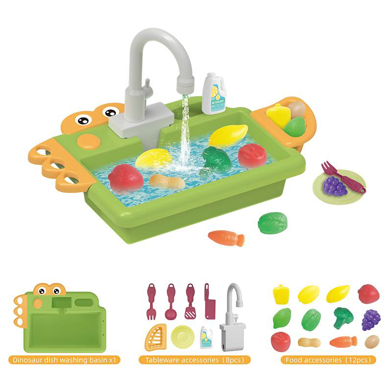 Прекрасен садопер кој работи како вистински со вода, под него има мала пумпа на батерии што пумпа вода во чешмата, совршено за вашите малечки да се забавуваат миејќи ги садовите исто како мама и тато.