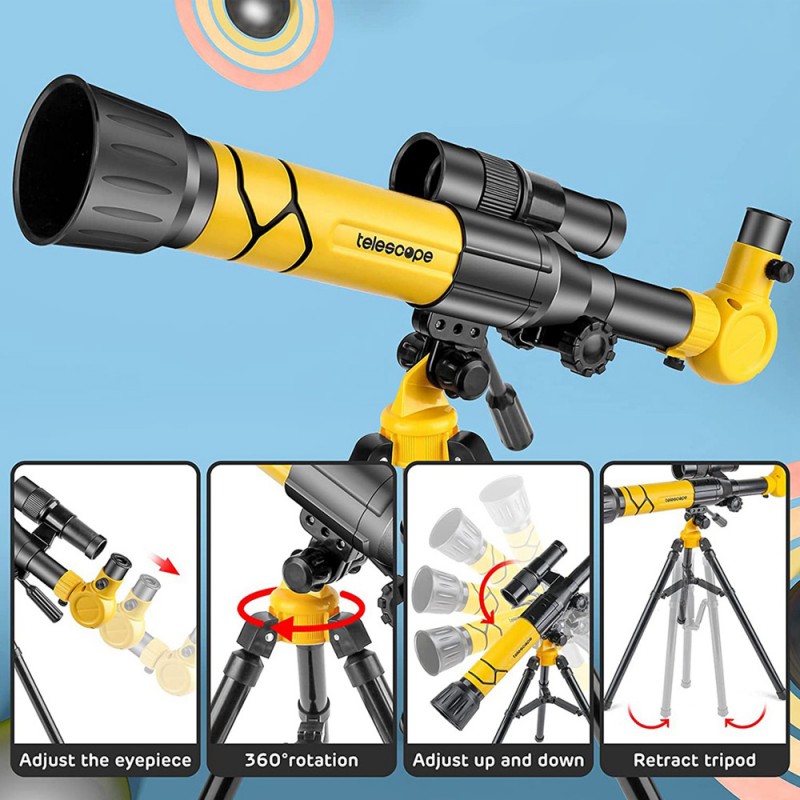 Време е да ги откриете тајните на вселената! Eдукативен телескоп за набљудување на месечината, ѕвездите, соѕвездијата. Пренослив телескоп со статив. Можност за зголемување 20х / 30х / 40х.