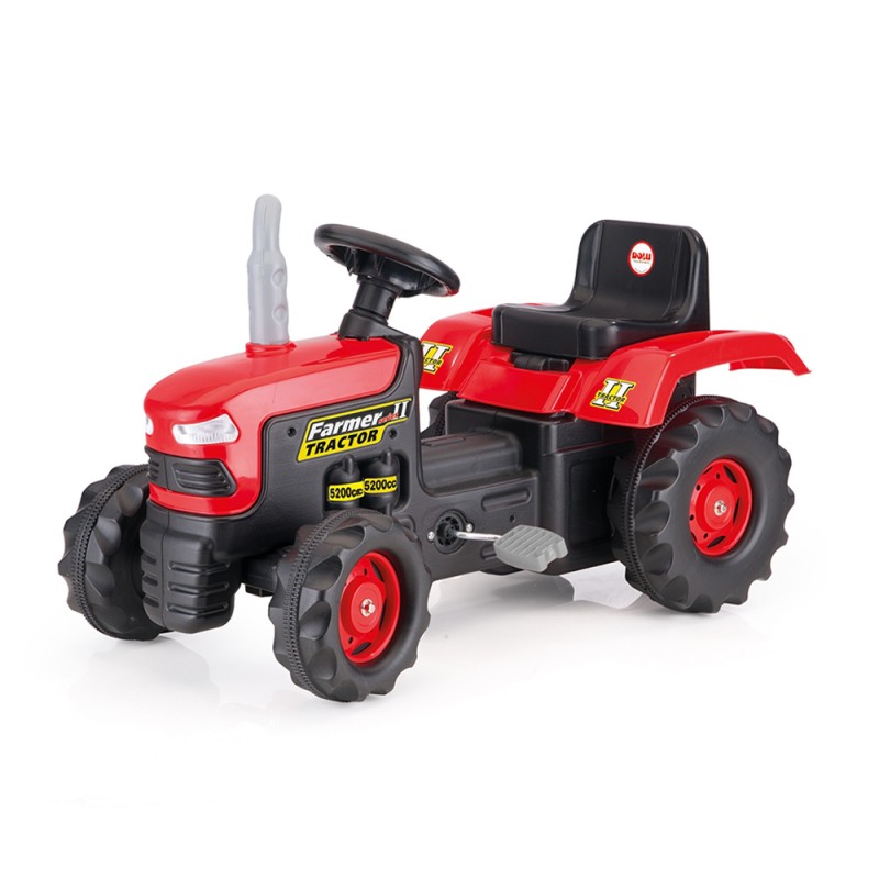 Супер забава за Вашите најмили. Прекрасен трактор на педали изработен од квалитетна цврста пластика и нетоксички бои. Удобно седиште со потпирач за грб.