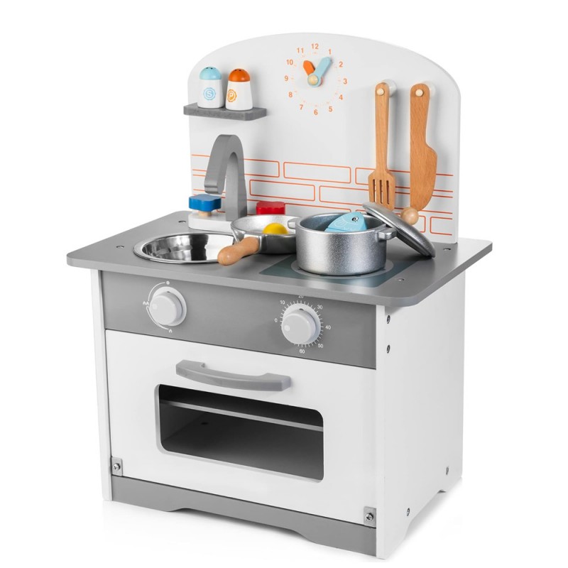 Вашето дете ќе стане вистински готвач со оваа мини дрвена кујна. Прекрасна дрвена кујна специјално направена за малите готвачи кои сакаат да ги направат своите први чекори во готвењето.