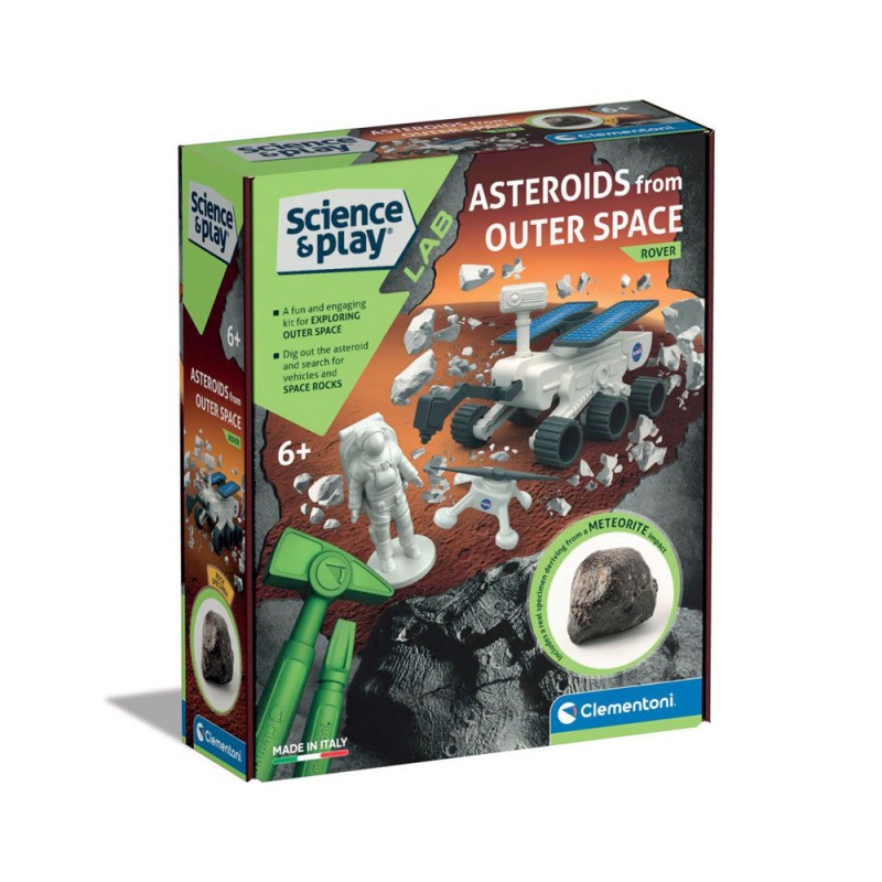 Креативен сет за малите астронаути. Откако ќе падне астероидот на земјата кој со себе го носи и роверот на НАСА, ваша задача е внимателно да го копате астероидот за да ги пронајдете роверот, дронот и астронаутот. Исто така не заборавајте да го пронајдете и скриениот метероит.