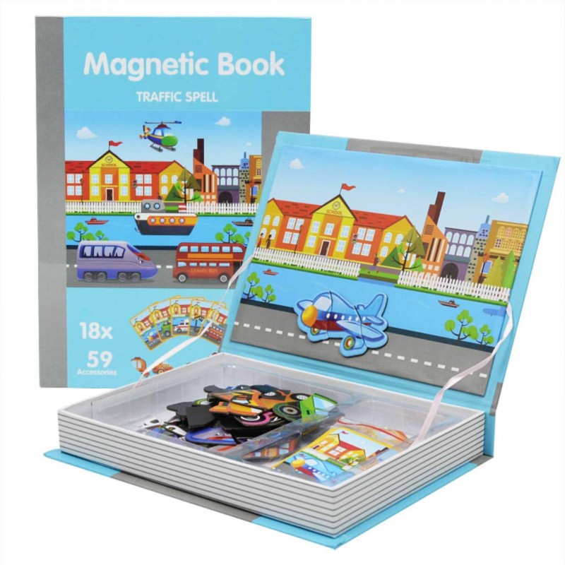 Прекрасна едукативна магнетна книга со сообраќајни возила. Едноставно поставете ја картичката со слика на возилото кое Вашето дете сака да го состави од магнетните делови. Децата можат да создадат смешни возила со мешање на различните магнети заедно.