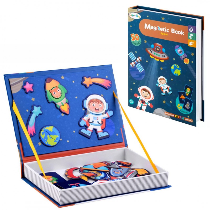 Подготви се за летање меѓу ѕвездите! Отвори ја книгата, избери ја картичката што сакаш да ја направиш и пронајди ги вистинските делови за да ја создадеш својата вселенска сцена.