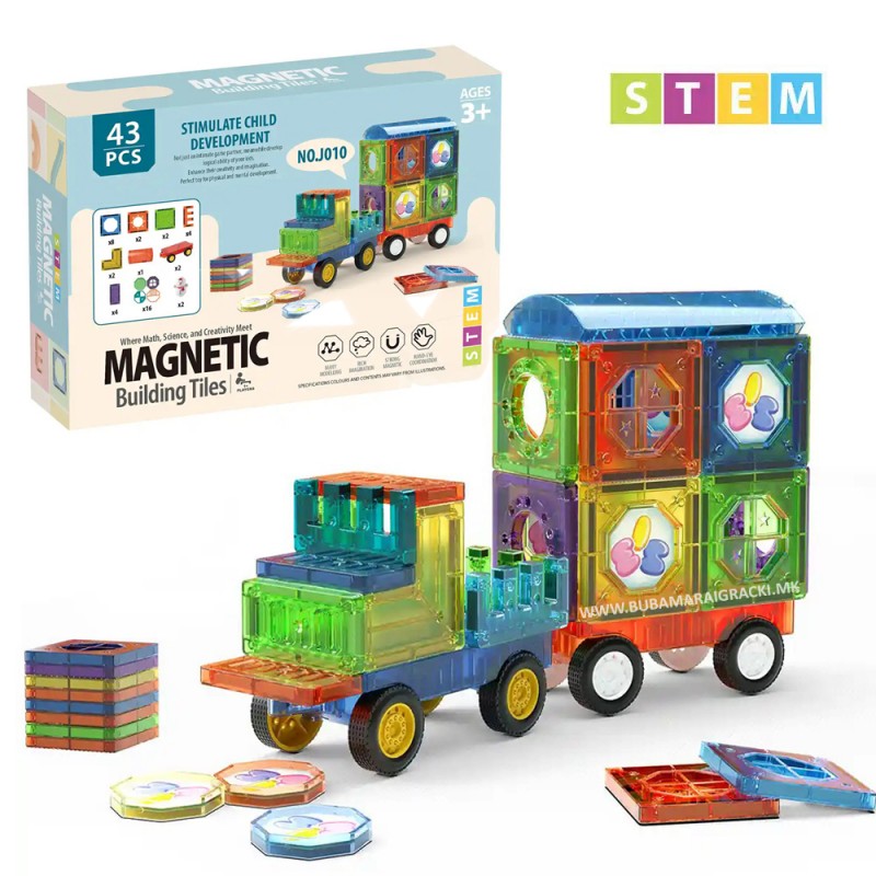 Магнетни блокови за градење камион, супер забава со часови за вашите најмили. Блоковите се градење имаат магнет вграден во секое парче.
