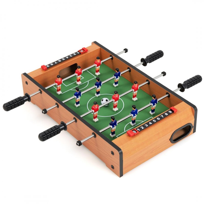 Супер забава за цело семејство. Прекрасна дрвена маса за фудбал на која може да играат 2 играчи. Секој тим има по 6 играчи. На двата краја од масата има броилка за бележење на резултатот.