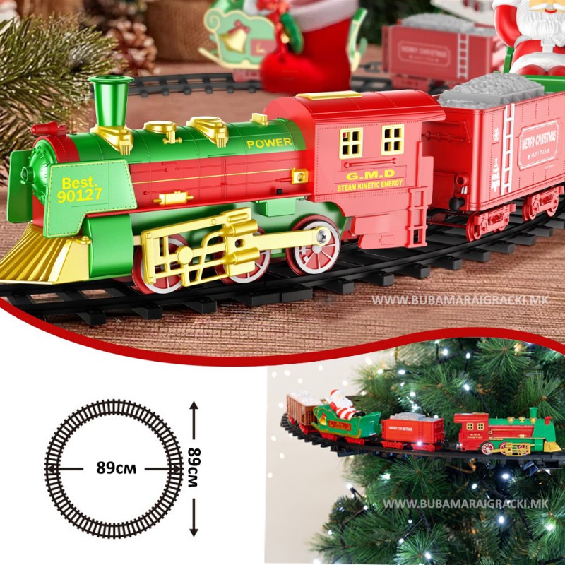 Новогодишен воз за на елка, волшебна новогодишна декорација! Донесете празнична магија во вашиот дом со овој забавен воз што кружи околку елката! Лесно се монтира дирекно на елката, создавајќи незаборавна новогодишна атмосфера што ќе ги воодушеви децата и возрасните. Возот е со новогодишна мелодија и светло.