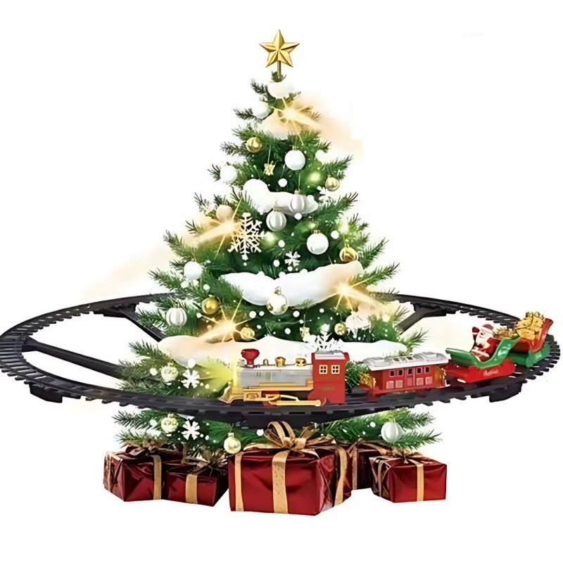Новогодишен воз за на елка, волшебна новогодишна декорација! Донесете празнична магија во вашиот дом со овој забавен воз што кружи околку елката! Лесно се монтираат дирекно на елката, создавајќи незаборава новогодишна атмосфера што ќе ги воодушеви децата и возрасните. Возот е со звук и светло, има опција да се исклучи.