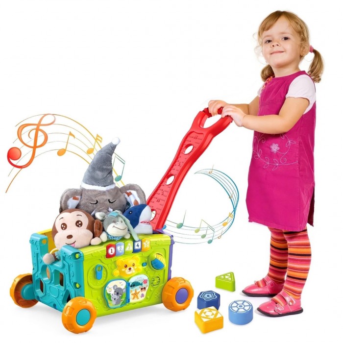 Во количката има доволно простор за омилените играчки - совршена за секое детско патување низ домот! Туркај, влечи, слушај музика и учи преку игра!