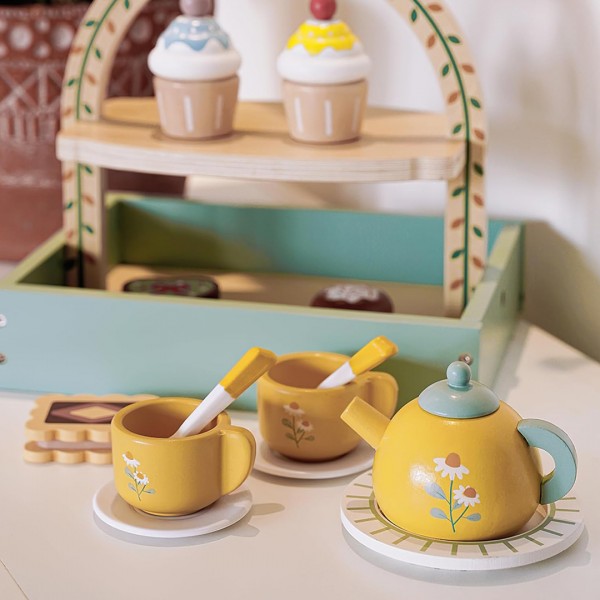 Време е за чајанка! Преслатка корпа со сет за чај, мафини и колачиња, совршена за малите љубители на игра со другарчиња.