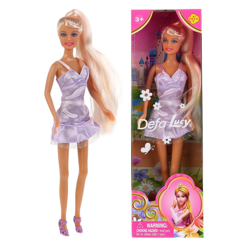 Defa кукла облечена во прекрасен светкав фустан и сандали кои совршено одговараат на модната комбинација. Одбери ја куклата која највеќе ти се допаѓа. Куклата е достапна во фустан од розева и виолетова боја.