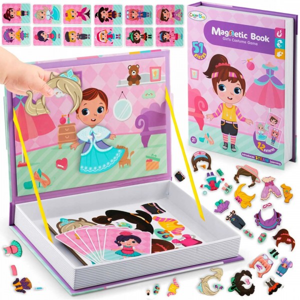 Магнетна книга со облеки - твојот мал свет за мода и фантазија! Во книгата ќе најдеш различни облеки и додатоци што можеш бескрајно да ги комбинираш. Едноставно поставете ја картичката со модна комбинација кое Вашето дете сака да ја состави од магнетните делови.