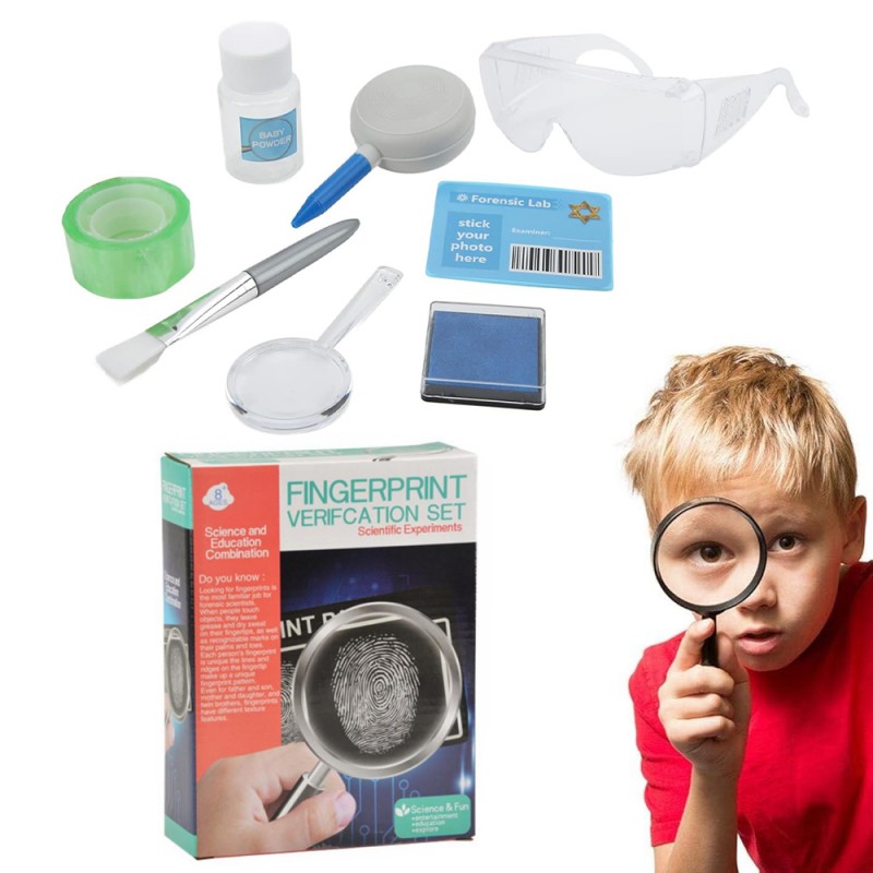 Совршен комплет за сите деца кои уживаат во детективската работа и се заинтересирани за индентификување на отпечатоци од прсти, идентификување на осомничени за криминал евиденција и собирање на докази.