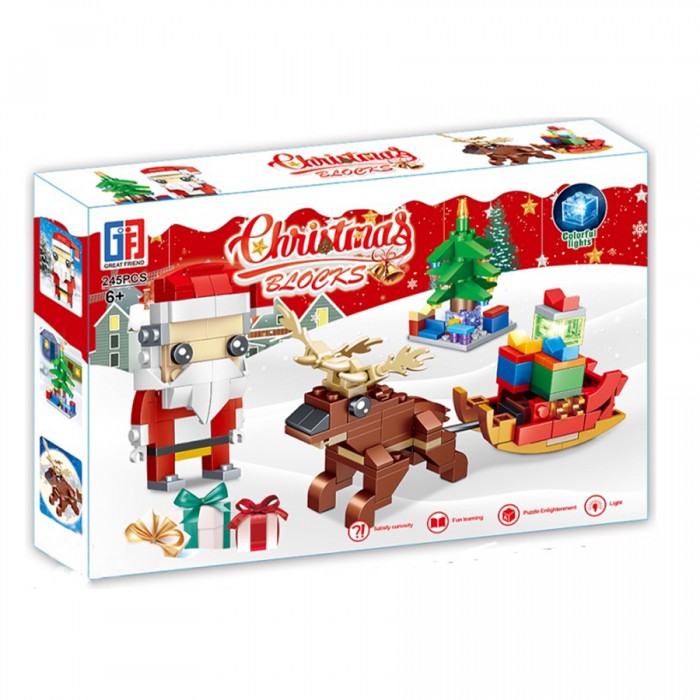 Новогодишна магија што сами ќе ја создадете! Новогодишна Санка со ирвас и Дедо Мраз се составуваат од коцки и ќе бидат совршена декорација во вашиот дом - креативно, шарено и полно со радост.
