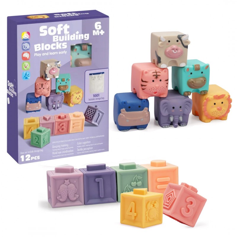 Сет од 12 меки коцки идеално направени за малите детски рачиња.