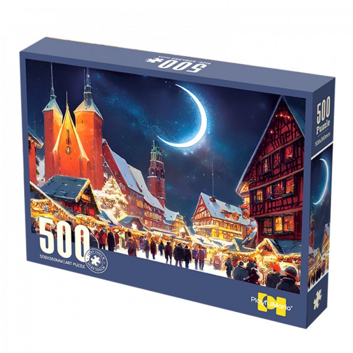 Уживај во магијата на зимската ноќ со оваа прекрасна сложувалка „Winter Night Street“ од 500 делови. Сцената исполнета со светилки, снежни улици и топли нијанси ќе те однесе во зимски свет полн со носталгија.