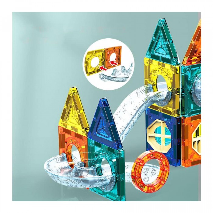 Магнетни блокови за градење со тобоган стаза за топчиња, супер забава со часови за вашите најмили. Б..
