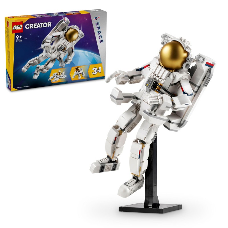 Полетувајте во вселената за нови авантури со 3 различни вселенски модели во 1 кутија. Истражувајте нови планети со супер кул астронаутот на LEGO Creator со златен визир и отстранлив авион. Потоа, наместо тоа, изградете куче астронаут или авион астронаут за уште поголема акција. Кога ќе се врати на Земјата, можете да го прикажете секој модел на држач.