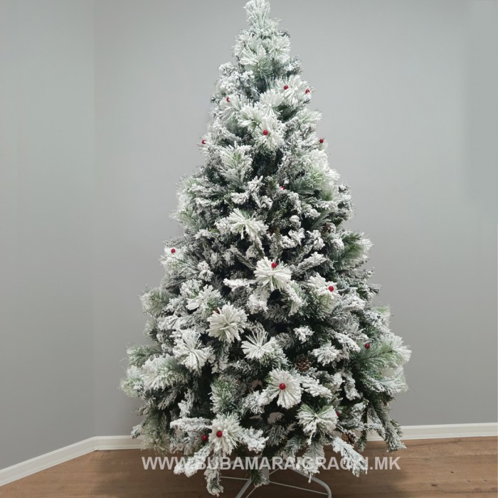 Внесете во вашиот дом новогодишна магија со прекрасната снежна елка. Екстра густа елка со одличен квалитет. Елката е во три делови, на секој дел се ставаат поединечно гранки кои се обележани со број(лесно и брзо се монтира).
