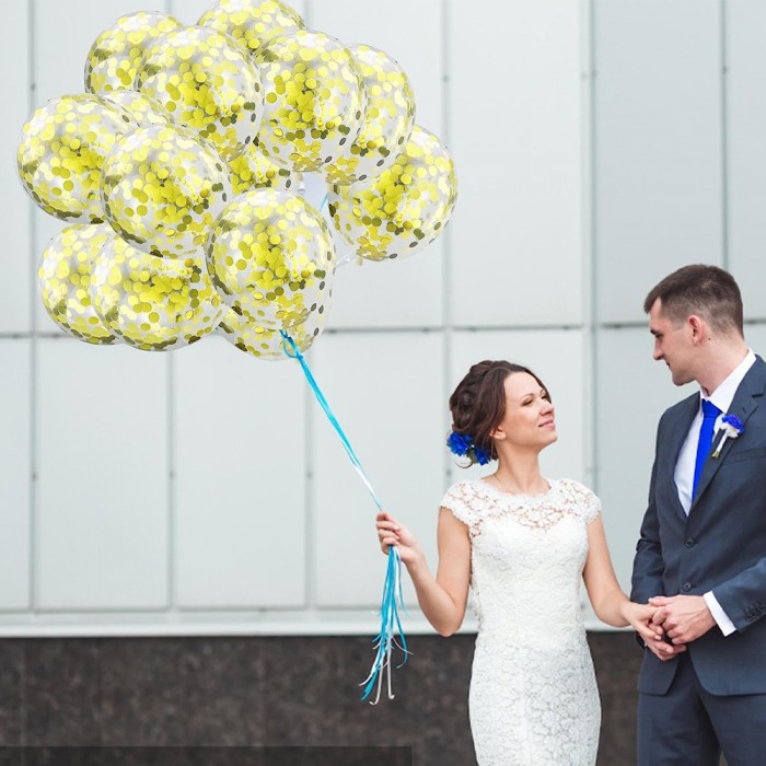 Балони со златни конфети, идеални за декорација на роденденски забави, крштевки, свадби, годишнини....