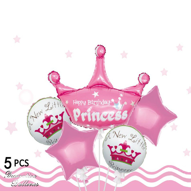 Happy Birthday Princess балон фолија, идеална за декорирање на роденденски забави. Вклучени се 5 парчиња. Балоните ги добивате спакувани, ненадувани. Може да се надуваат со воздух или хелиум.