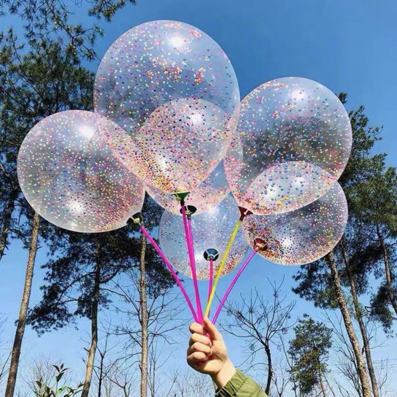 Латекс балони полнети со шарени стиропор топчиња, идеални за декорација на роденденски забави, крштевки, свадби, годишнини.....Балоните може да ги надувате со воздух или хелиум.