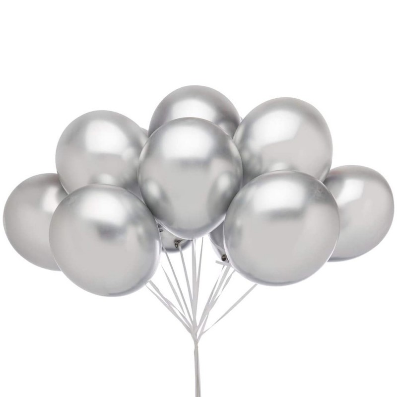 Сребрени латекс балони, идеални за декорација на роденденски забави, крштевки, свадби, годишнини.....Балоните може да ги надувате со воздух или хелиум.
