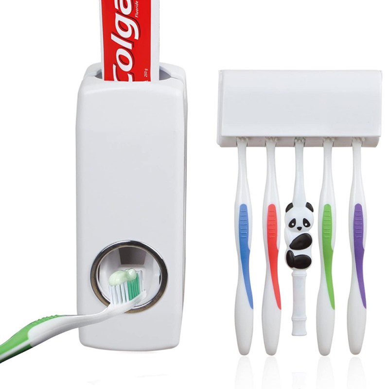 Практичен диспанзер со држач за четки, кој овозможува брзо и лесно да ставите од вашата паста дирекно на вашата четка. На држачот може да се стават 5 четки.