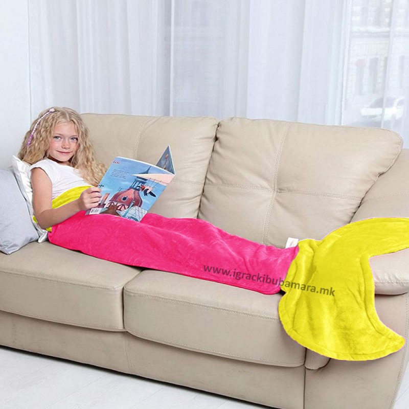 Прекрасно меко ќебенце во форма на опашка од сирена, ќе ги воодушеви Вашите малечките принцези! Совршено е додека Вашите малечки читат книга, гледаат цртан или едноставно уживаат на креветот пиејќи топло чоколадо.