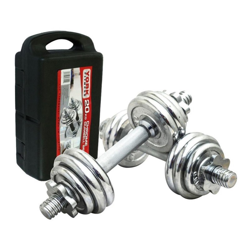 Сет тегови за вежбање со вкупна тежина 20кг. Теговите се спакувани во куфер