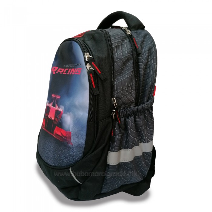 Ранец на тркала со рачка за влечење.Вклучени се:3 преградинесесерторба за храна со димензија: 25х8х2..